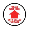 "Please Wait Here Until Called Forward" Safety Sign, Round Black / White / Red, 4"