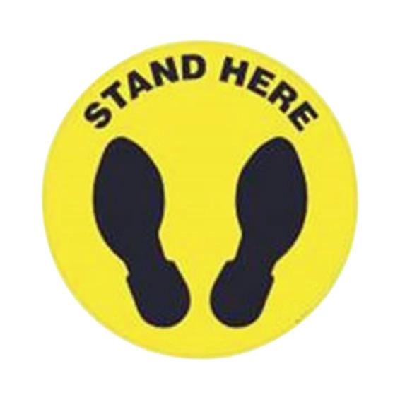 "Stand Here" Safety Sign, Round Yellow, 4"