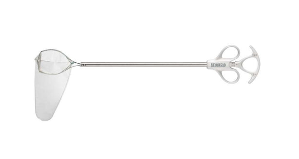 - Thumb-ring handle and finger rings enable one-handed deployment of the specimen bag within the body cavity.