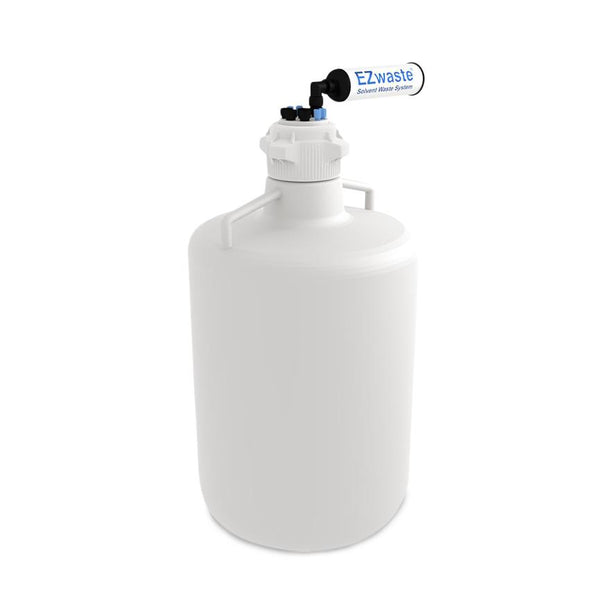 EZWaste Solvent Waste System, Safety Vent Round HDPE Carboy with VersaCap, 20 L, 4 Ports for 1/8" Tubing, 4 Ports for 1/4" Tubing, Filter