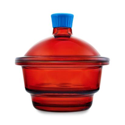 Borosil Amber Desiccator with Porcelain Plate, Plastic Knob, 150 mm, Small