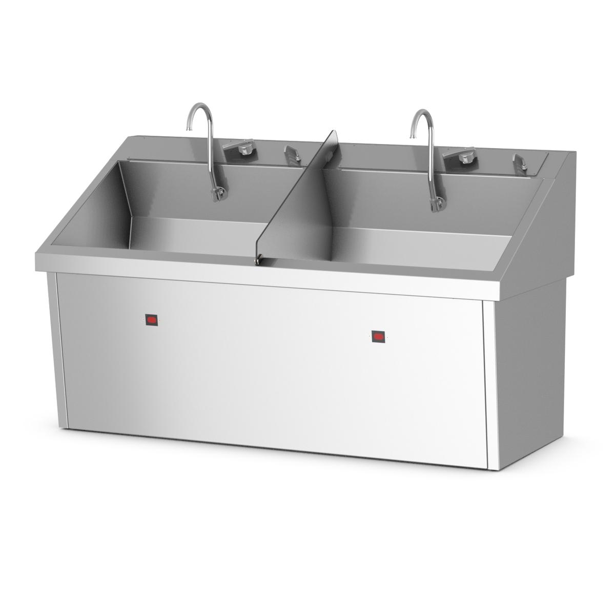 Surgical Scrub Sink with Knee Operated Water, Dual Station, 27.5"D x 64"W x 37"H, Infrared Operation, Foot Operated Soap