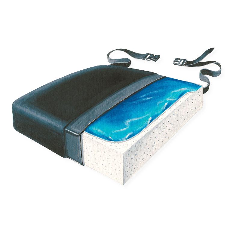 • Water-based gel lowers interface pressure and cools user, minimizing perspiration
