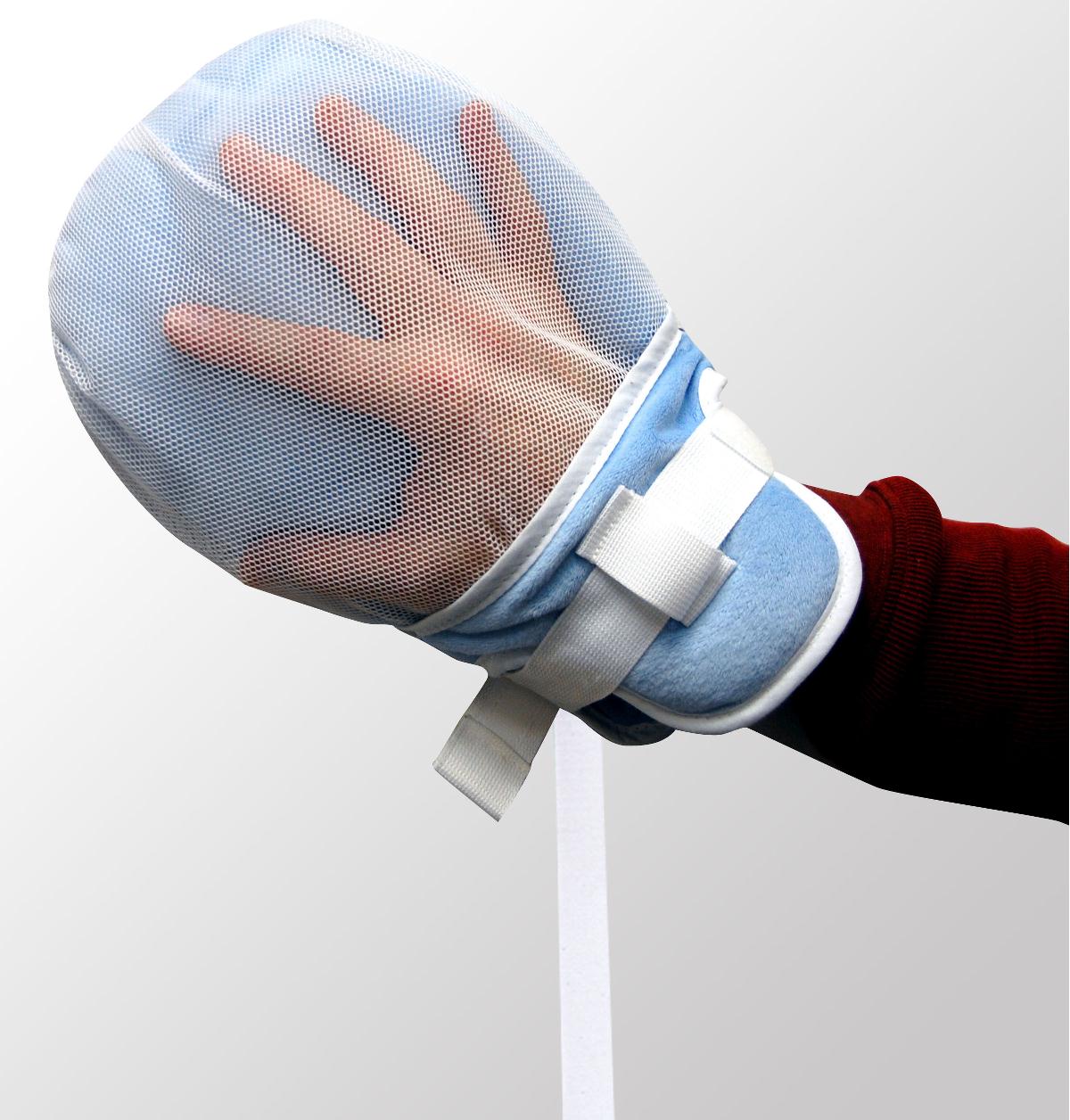 • These extra padded mitts limit picking, scratching, the ability to grab tubes and bruising other residents. They also limit the hand range-of-motion when the extra tie strap is used.