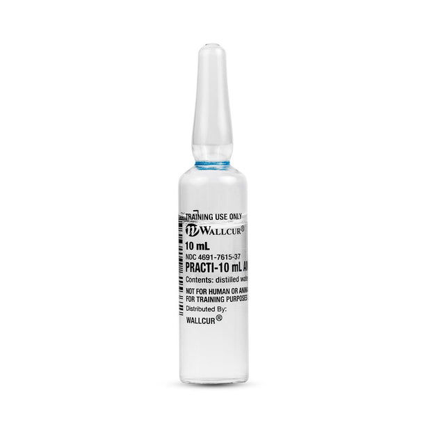 • Ampule designed for students to learn ampule handling, fluid displacement from top to bottom, sterile technique during aspiration, and dosage measurement