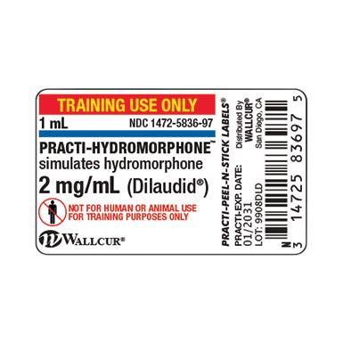 Practi-Hydromorphone Dilaudid Training Label, 2 mg/1 mL Ampule Label Easy-to-use Peel-N-Stick label designed to teach...