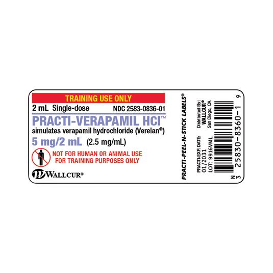 Practi-Verapamil HCl Verelan Training Label, Peel-N-Stick, 5 mg/2 mL Vial Label